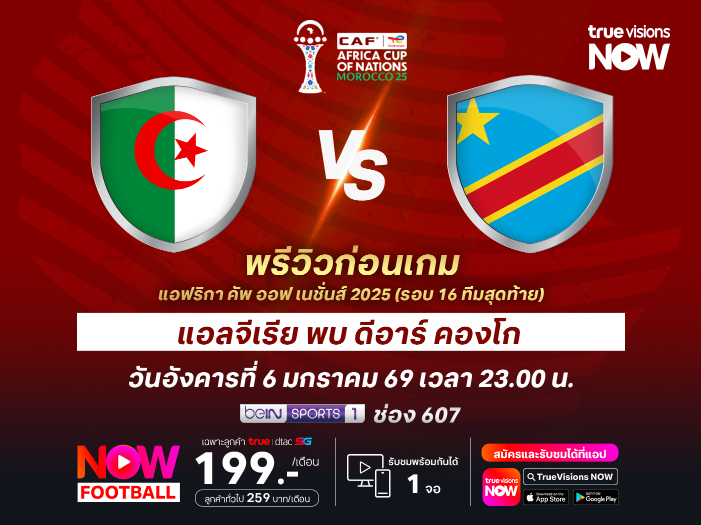 ศึก แอฟริกา คัพ ออฟ เนชั่นส์ 2025 รอบ 16 ทีมสุดท้าย แอลจีเรีย จะเล่นที่ มูเลย์ ฮัสซัน สเตเดี้ยม พบกับ ดีอาร์ คองโก โดยเกมนี้ แอลจีเรีย มีฟอร์มการเล่นที่ยอดเยี่ยม หลังชนะมาทั้ง 3 นัดในรอบแบ่งกลุ่ม แต่การเจอกับ ดีอาร์ คองโก ถือว่าไม่ง่าย เพราะก็โชว์ฟอร์มในรอบแบ่งกลุ่มได้ดีเช่นกัน ทำให้เกมนี้เป็นที่น่าจะสูสีและยากที่จะคาดเดาผลการแข่งขัน แม้ว่า แอลจีเรีย อาจจะดูดีกว่าก็ตาม