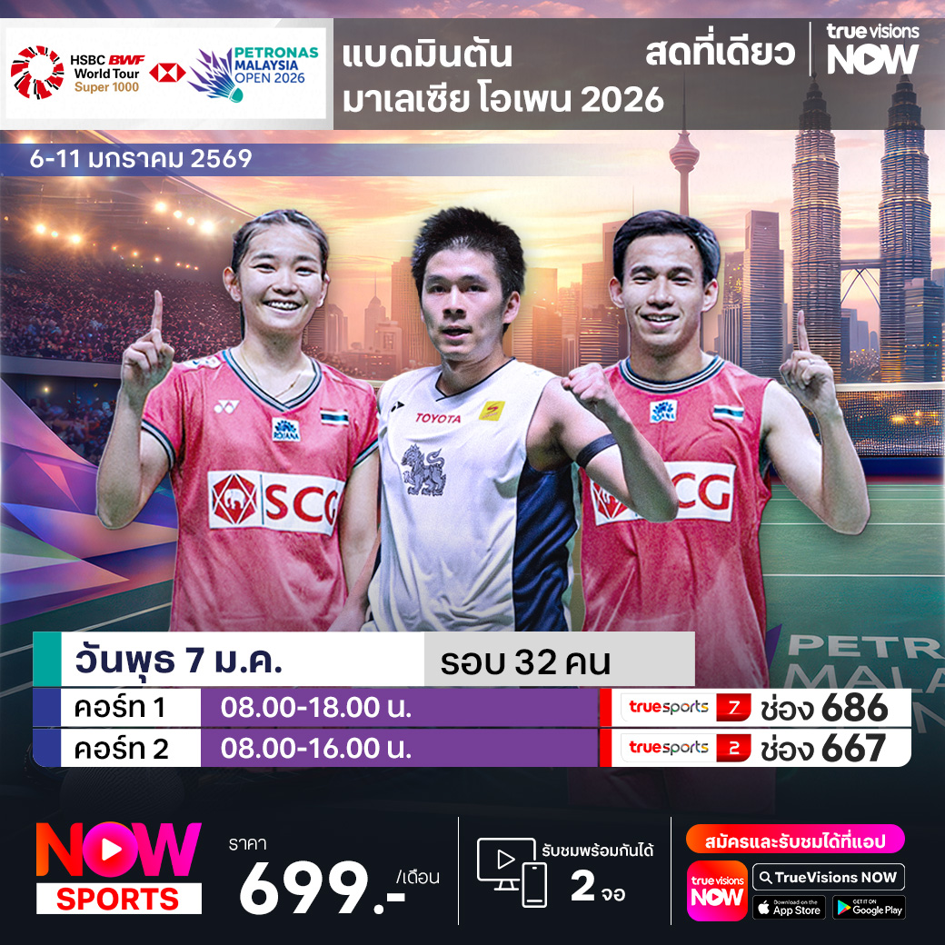 เปิดศักราชใหม่อย่างยิ่งใหญ่และคึกคักกับ แบดมินตัน เก็บคะแนนสะสมโลก รายการแรกของฤดูกาลใหม่ ประเดิมกันด้วยรายการระดับ เวิลด์ ทัวร์ ซูเปอร์ 1000 มาเลเซีย โอเพ่น ที่สเตเดี้ยม เอเชียต้า อารีน่า กรุงกัวลาลัมเปอร์ ประเทศมาเลเซีย ชิงเงินรางวัลมากถึง 45.6 ล้านบาท ซูเปอร์สตาร์ระดับโลกร่วมแข่งขันกันคับคั่ง ส่งใจเชียร์ทีมแบดมินตันไทยก้าวไปคว้าแชมป์ ชมสด ครบทุกรอบ ที่ ทรูวิชั่นส์