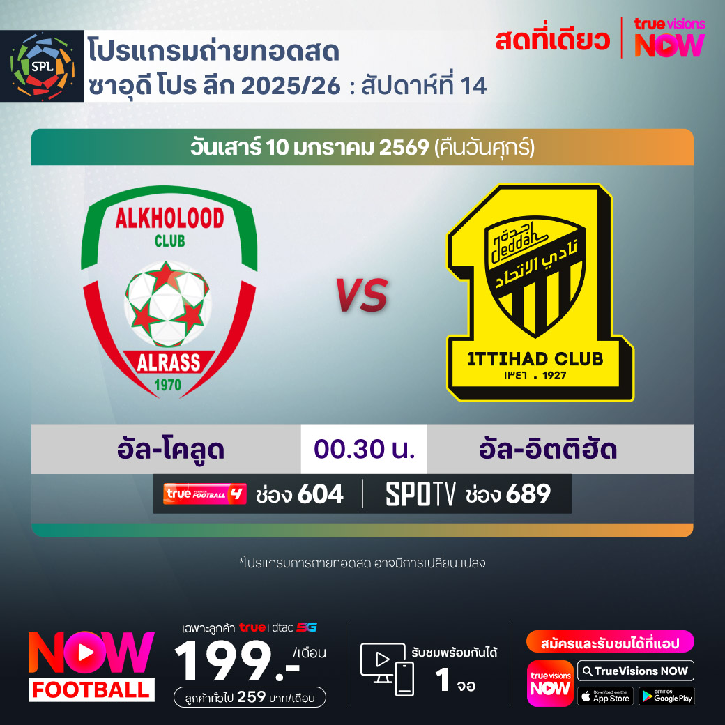 Al Kholood vs Al Ittihad เวลา 00.30-02.30 ทางช่องTPF 4(604) / SPOTV (689)