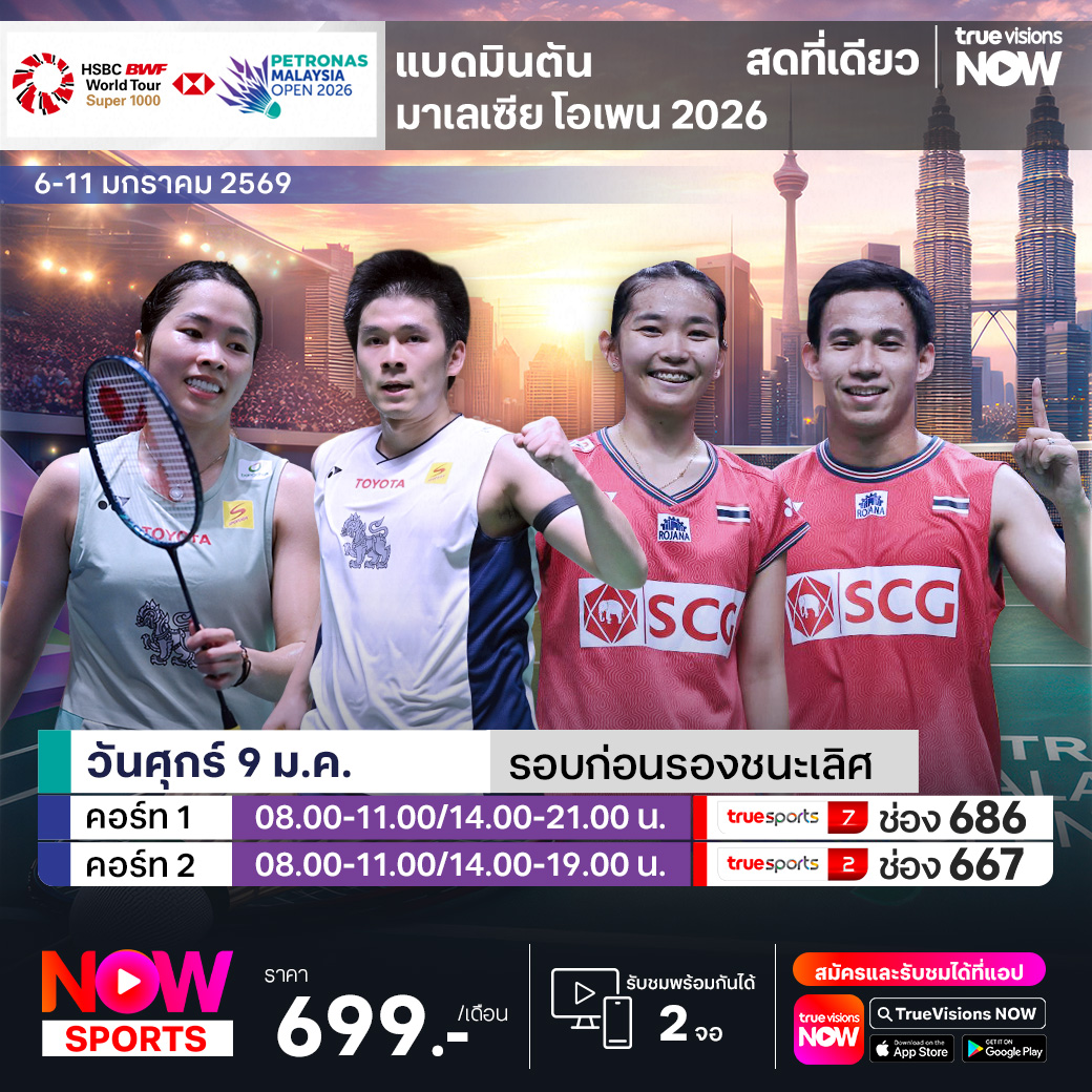 เปิดศักราชใหม่อย่างยิ่งใหญ่และคึกคักกับ แบดมินตัน เก็บคะแนนสะสมโลก รายการแรกของฤดูกาลใหม่ ประเดิมกันด้วยรายการระดับ เวิลด์ ทัวร์ ซูเปอร์ 1000 มาเลเซีย โอเพ่น ที่สเตเดี้ยม เอเชียต้า อารีน่า กรุงกัวลาลัมเปอร์ ประเทศมาเลเซีย ชิงเงินรางวัลมากถึง 45.6 ล้านบาท ซูเปอร์สตาร์ระดับโลกร่วมแข่งขันกันคับคั่ง ส่งใจเชียร์ทีมแบดมินตันไทยก้าวไปคว้าแชมป์ ชมสด ครบทุกรอบ ที่ ทรูวิชั่นส์