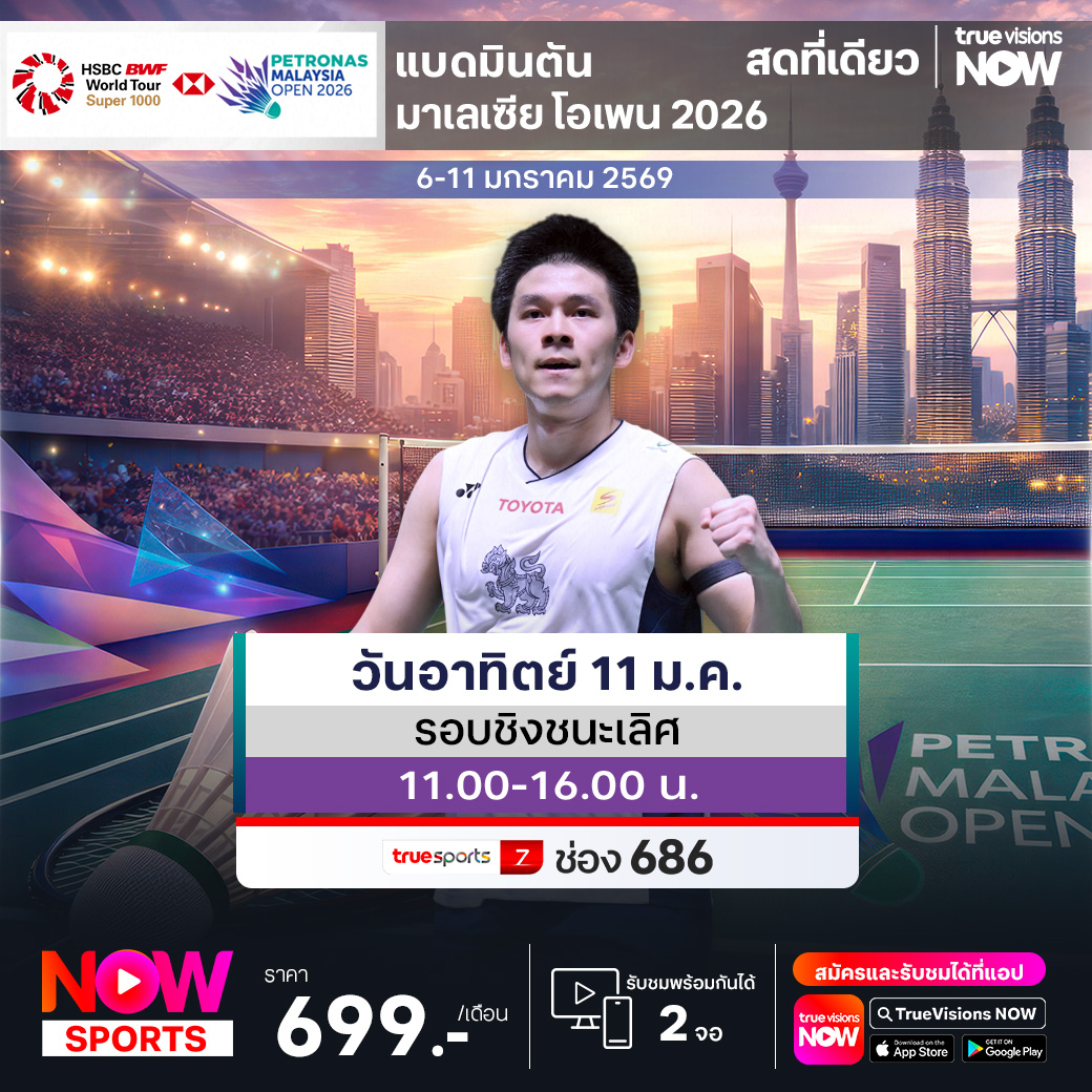 เปิดศักราชใหม่อย่างยิ่งใหญ่และคึกคักกับ แบดมินตัน เก็บคะแนนสะสมโลก รายการแรกของฤดูกาลใหม่ ประเดิมกันด้วยรายการระดับ เวิลด์ ทัวร์ ซูเปอร์ 1000 มาเลเซีย โอเพ่น ที่สเตเดี้ยม เอเชียต้า อารีน่า กรุงกัวลาลัมเปอร์ ประเทศมาเลเซีย ชิงเงินรางวัลมากถึง 45.6 ล้านบาท ซูเปอร์สตาร์ระดับโลกร่วมแข่งขันกันคับคั่ง ส่งใจเชียร์ทีมแบดมินตันไทยก้าวไปคว้าแชมป์ ชมสด ครบทุกรอบ ที่ ทรูวิชั่นส์