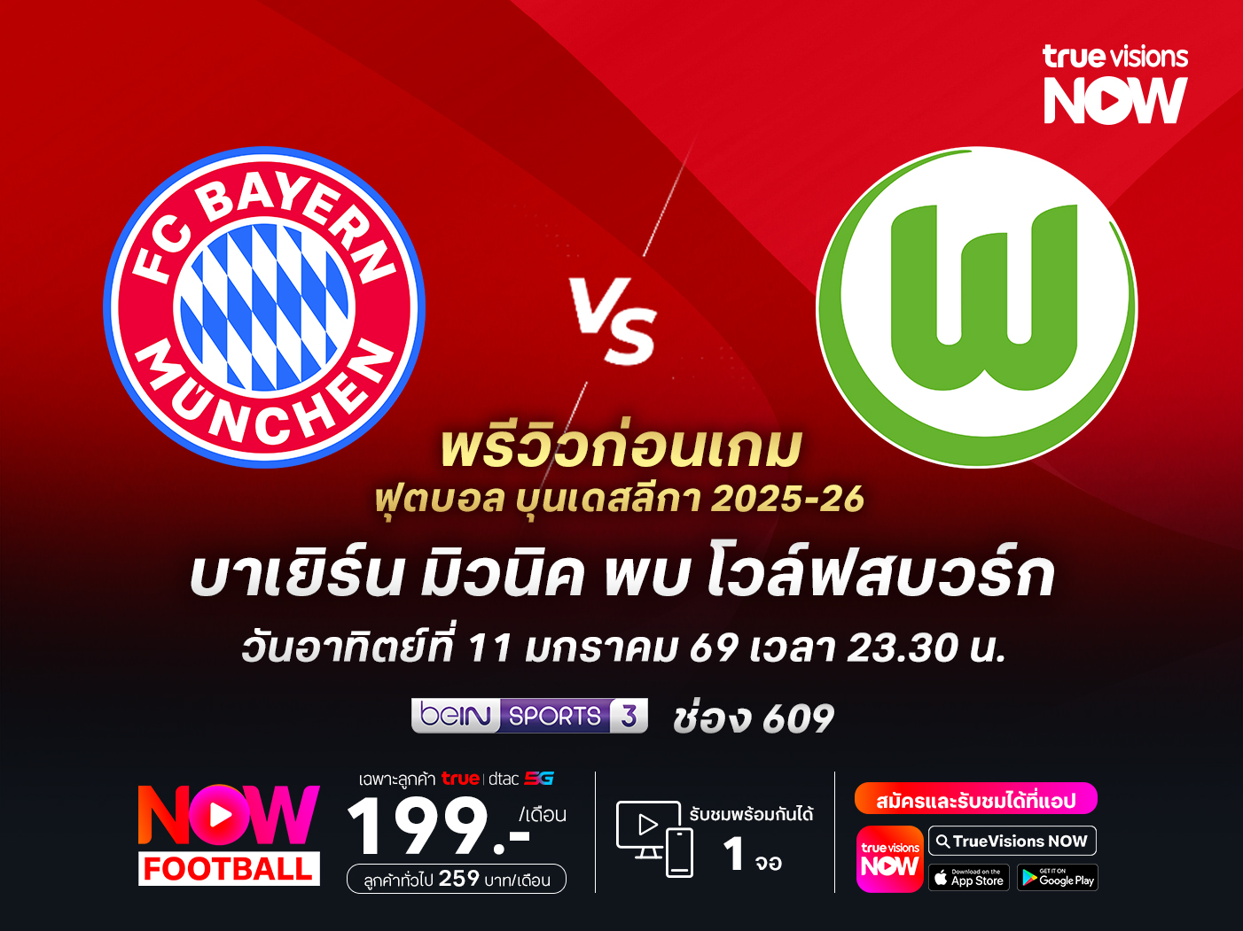 ศึก บุนเดสลีกา เยอรมนี 2025-26 บาเยิร์น มิวนิค จะเล่นที่ อัลลิอันซ์ อารีน่า รับการมาเยือนของ โวล์ฟสบวร์ก โดยเกมนี้ บาเยิร์น เจ้าถิ่น อยู่ในฟอร์มการเล่นที่ดีต่อเนื่อง ชนะมา 5 จากการลงเล่น 6 เกมหลังสุดในทุกรายการ ขณะที่ โวล์ฟสบวร์ก ฟอร์มยังไม่แน่นอนเท่าไหร่นัก หลังชนะได้แค่ 2 เกมจากการลงเล่น 5 เกมหลังสุด จนทำให้อันดับใกล้ถึงโซนตกชั้นเต็มที