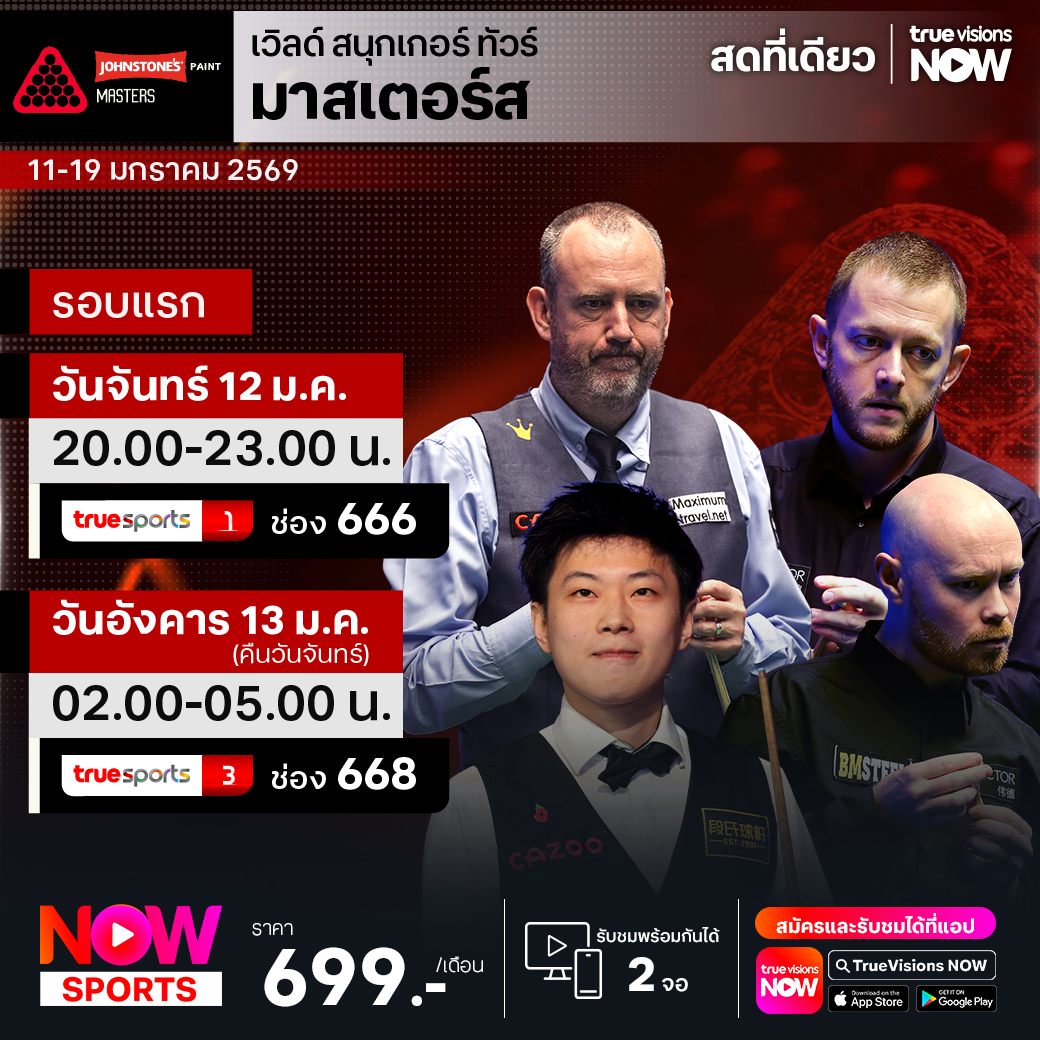 แฟนๆ สนุกเกอร์ พลาดไม่ได้กับศึกใหญ่รายการสำคัญของ เวิลด์ สนุกเกอร์ ทัวร์ ประเดิมกันด้วยรายการแห่งศักดิ์ศรีระดับ ทริปเปิล คราวน์ ซีรี่ส์ กับรายการ มาสเตอร์ส 2026 ที่จะเป็นเวทีวัดความแม่นของนักแม่นคิวเฉพาะ 16 อันดับแรกของโลก ร่วมลุ้นกันว่าใครจะได้แชมป์ปีนี้ไปครอง ชมสด จาก อเล็กซานดร้า พาเลซ ประเทศอังกฤษ ที่ ทรูวิชั่นส์