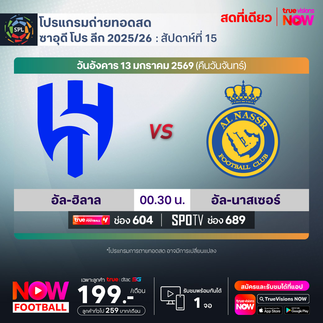 Al Hilal vs Al Nassr เวลา 00.30-02.30 ทางช่องTPF 4(604) / SPOTV (689)