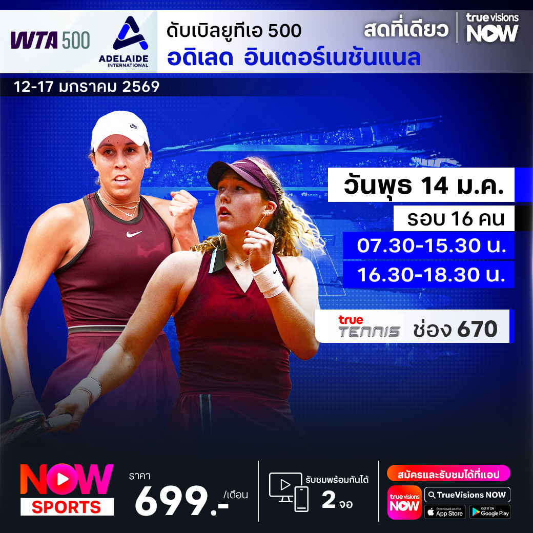 เทนนิสหญิงรายการที่ 2 ของปี แข่งขันกันที่ออสเตรเลียอย่างต่อเนื่อง ในรายการระดับ WTA 500 อเดเลด อินเตอร์เนชั่นแนล บรรดานักเทนนิสหญิงระดับโลกเข้าร่วมการแข่งขันแบบจัดเต็ม เพื่อเตรียมตัวก่อนแกรนด์สแลมแรกของปี ออสเตรเลียน โอเพ่น ร่วมลุ้นกันว่าใครจะคว้าแชมป์ในรายการนี้ไปครอง ชมสด ครบทุกรอบ ที่ ทรูวิชั่นส์