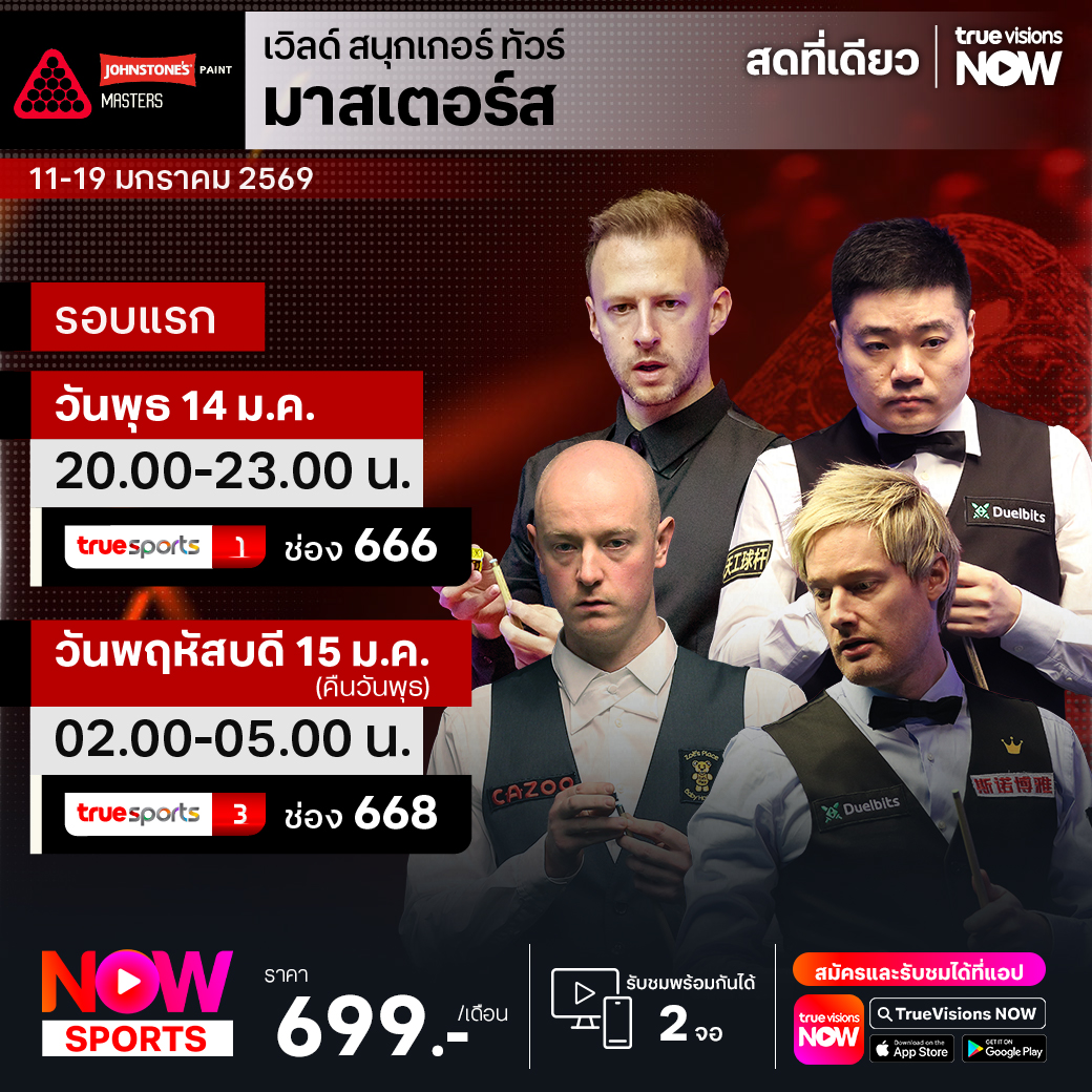 แฟนๆ สนุกเกอร์ พลาดไม่ได้กับศึกใหญ่รายการสำคัญของ เวิลด์ สนุกเกอร์ ทัวร์ ประเดิมกันด้วยรายการแห่งศักดิ์ศรีระดับ ทริปเปิล คราวน์ ซีรี่ส์ กับรายการ มาสเตอร์ส 2026 ที่จะเป็นเวทีวัดความแม่นของนักแม่นคิวเฉพาะ 16 อันดับแรกของโลก ร่วมลุ้นกันว่าใครจะได้แชมป์ปีนี้ไปครอง ชมสด จาก อเล็กซานดร้า พาเลซ ประเทศอังกฤษ ที่ ทรูวิชั่นส์