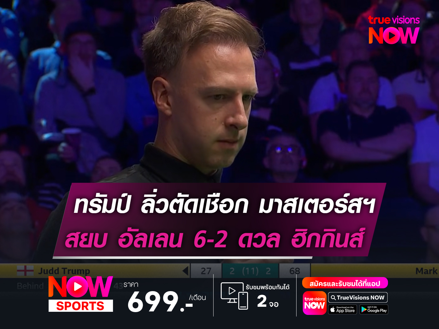 ผลปรากฏว่า ทรัมป์ ที่ถูกยกให้เป็น "เต็ง 1 ของรายการ" ยังคงออกคิวได้อย่างยอดเยี่ยม! โดยเป็นฝ่ายไล่แทงเอาชนะ อัลเลน ไปแบบสบายมือ 6-2 เฟรม ผ่านเข้ารอบตัดเชือกไปดวลกับ "พ่อมด" จอห์น ฮิกกินส์ อันดับ 5 ของโลกจากสกอตแลนด์ ที่เอาชนะ จ้าว ซิน ถง มืออันดับ 9 ของโลกจากจีน มาแบบหวุดหวิด 6-5 เฟรม