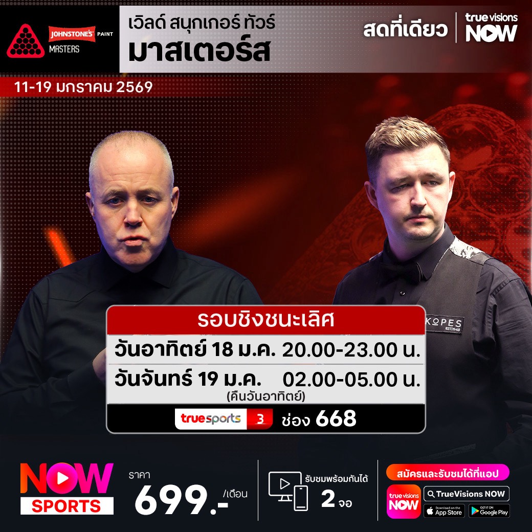 แฟนๆ สนุกเกอร์ พลาดไม่ได้กับศึกใหญ่รายการสำคัญของ เวิลด์ สนุกเกอร์ ทัวร์ ประเดิมกันด้วยรายการแห่งศักดิ์ศรีระดับ ทริปเปิล คราวน์ ซีรี่ส์ กับรายการ มาสเตอร์ส 2026 ที่จะเป็นเวทีวัดความแม่นของนักแม่นคิวเฉพาะ 16 อันดับแรกของโลก ร่วมลุ้นกันว่าใครจะได้แชมป์ปีนี้ไปครอง ชมสด จาก อเล็กซานดร้า พาเลซ ประเทศอังกฤษ ที่ ทรูวิชั่นส์