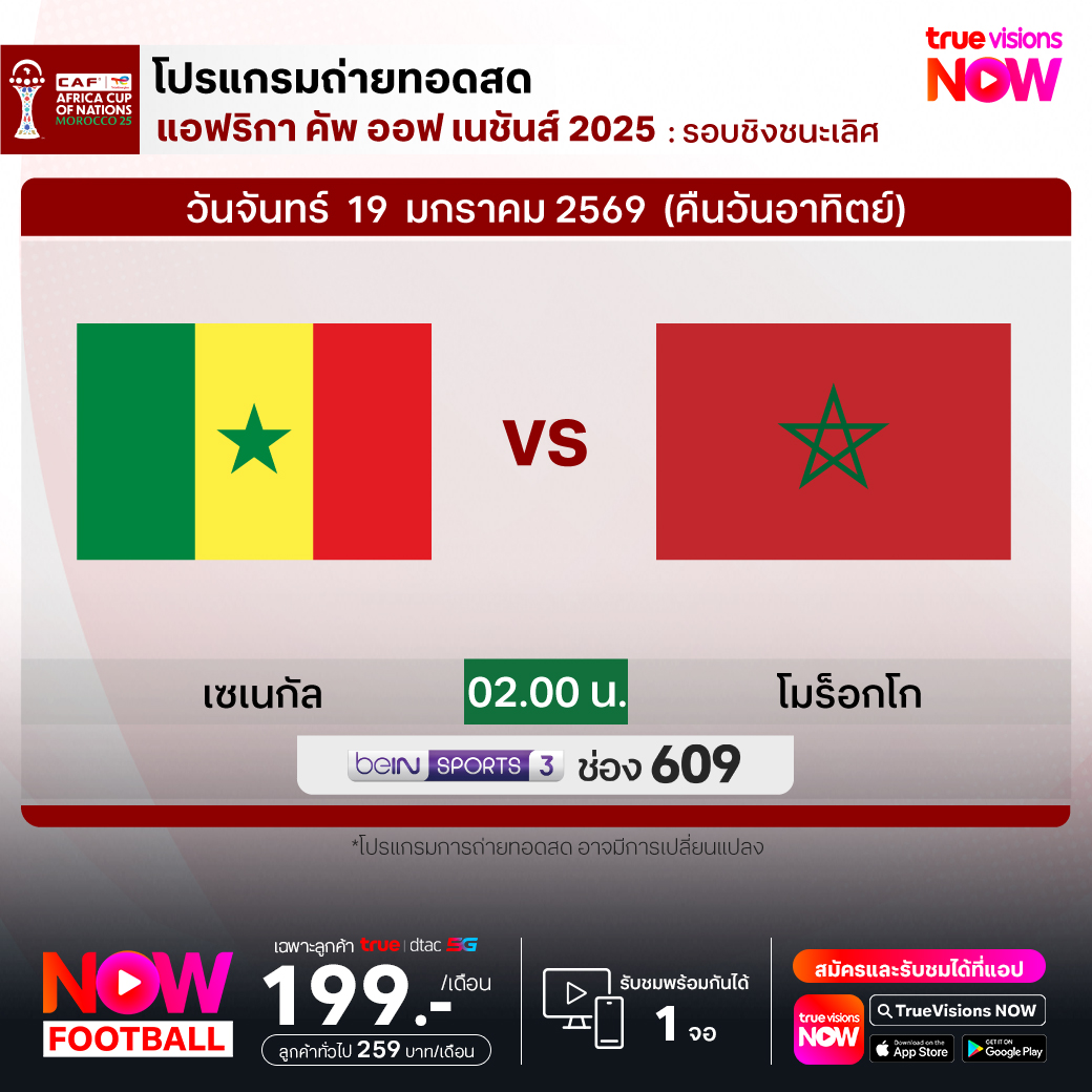 รอบชิงชนะเลิศ Senegal vs Morocco เวลา 02.00-04.00 ทางช่อง beIN 3 (609)