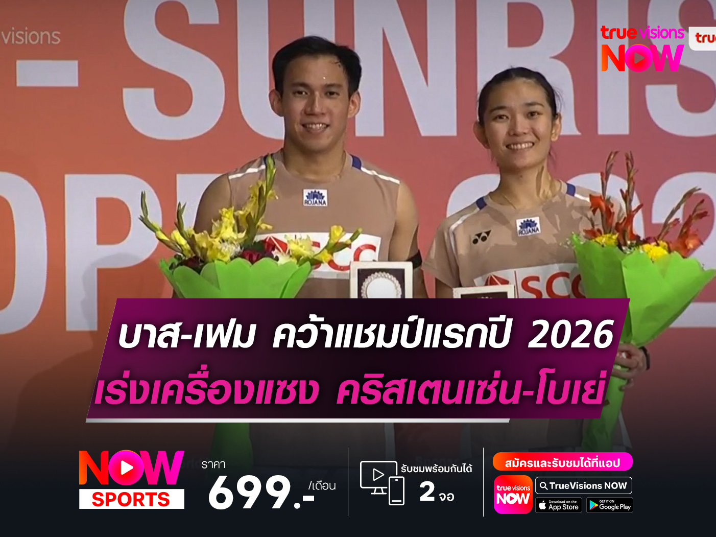 ผลปรากฏว่า "บาส" เดชาพล กับ "เฟม" ศุภิสรา ต้องออกแรงเหนื่อยเล่นเกมยาวกับ คริสเตนเซ่น-โบเย่ อีกครั้ง ก่อนที่สุดท้าย "บาส-เฟม" จะย้ำแค้นเอาชนะ "คู่เดนมาร์ก" ไปแบบสุดมันส์ 2-1 เกม (19-21, 25-23, 21-18) ผงาดคว้าแชมป์รายการแรกของปี 2026 มาครองได้สำเร็จ