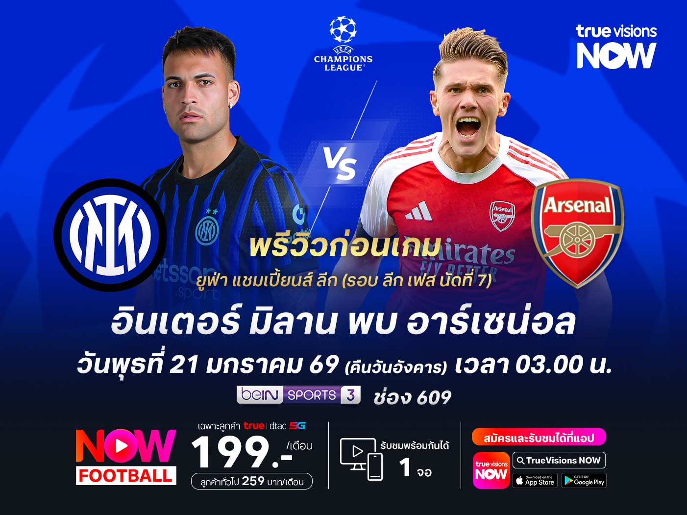 ศึก ยูฟ่า แชมเปี้ยนส์ ลีก 2025-26 รอบ ลีก เฟส นัดที่เจ็ด อินเตอร์ มิลาน จากอิตาลี จะเล่นที่ จูเซ็ปเป้ เมอัซซ่า รับการมาเยือนของ อาร์เซน่อล จากอังกฤษ โดยเกมนี้ อินเตอร์ มิลาน เจ้าถิ่น ฟอร์มยังยอดเยี่ยมในช่วงที่ผ่านมา หลังไม่แพ้ใครมา 6 เกมติดต่อกันแล้วและยังชนะมาถึง 5 เกม ขณะที่ อาร์เซน่อล ก็ฟอร์มแกร่งเช่นกัน ไม่แพ้ใครมา 11 นัดติดต่อกันแล้วในทุกรายการ และยังชนะไปถึง 9 นัด และเกมนี้พวกเขาขอแค่ไม่แพ้ ก็จะการันตีการติดท็อป 8 ในรอบ ลีก เฟส ทันที