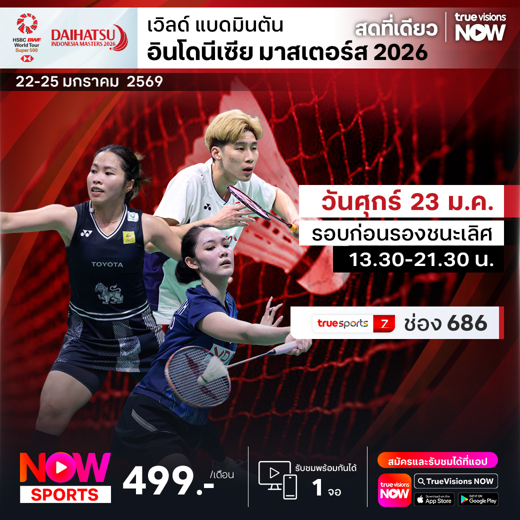 แบดมินตัน เก็บคะแนนสะสมโลก ฤดูกาลใหม่ 2026 กับรายการที่ 3 ในสัปดาห์นี้ สัมผัสเกมที่เข้มข้น ดุเดือด ของรายการระดับ เวิลด์ ทัวร์ ซูเปอร์ อินโดนีเซีย มาสเตอร์ส ที่กรุงจาการ์ต้า ประเทศอินโดนีเซีย หนึ่งในชาติมหาอำนาจของวงการแบดมินตันโลก มือดีมากันแบบครบๆ ส่งใจเชียร์ทีมแบดมินตันไทยสู้เพื่อคว้าชัยชนะ ชมสด ที่ ทรูวิชั่นส์