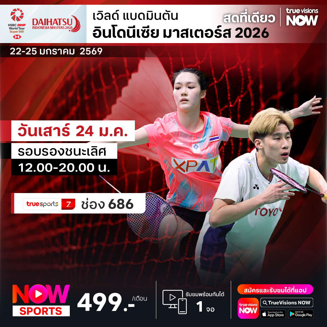 แบดมินตัน เก็บคะแนนสะสมโลก ฤดูกาลใหม่ 2026 กับรายการที่ 3 ในสัปดาห์นี้ สัมผัสเกมที่เข้มข้น ดุเดือด ของรายการระดับ เวิลด์ ทัวร์ ซูเปอร์ อินโดนีเซีย มาสเตอร์ส ที่กรุงจาการ์ต้า ประเทศอินโดนีเซีย หนึ่งในชาติมหาอำนาจของวงการแบดมินตันโลก มือดีมากันแบบครบๆ ส่งใจเชียร์ทีมแบดมินตันไทยสู้เพื่อคว้าชัยชนะ ชมสด ที่ ทรูวิชั่นส์