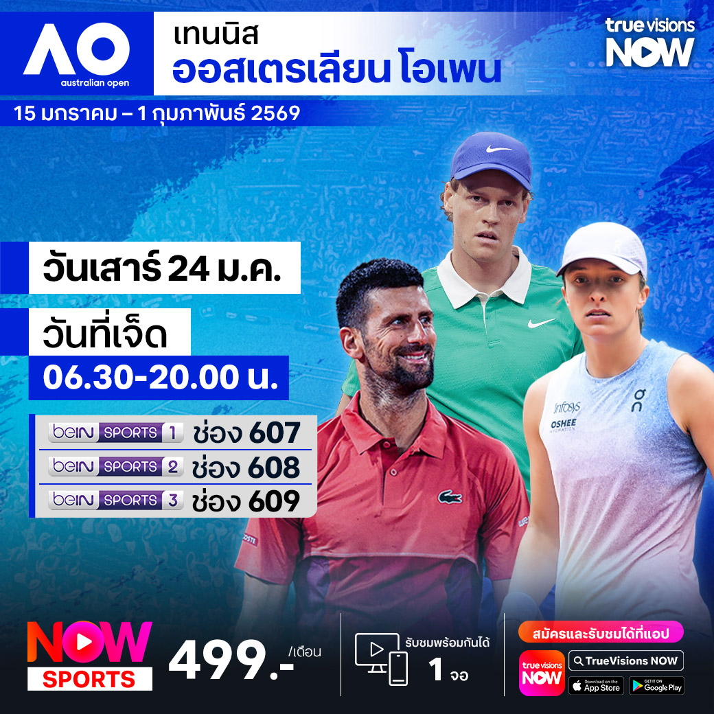ศึกเทนนิส ออสเตรเลียน โอเพ่น แกรนด์สแลมแรกของปี 2026 เริ่มต้นอีกครั้ง กับการแข่งขันในสภาพอากาศที่ร้อนจัดของเมืองเมลเบิร์น ประเทศออสเตรเลีย แชมป์เก่า ยานนิค ซินเนอร์ ลงป้องกันแชมป์อีกครั้ง ร่วมด้วย คาร์ลอส อัลคาราซ และ โนวัค ยอโชวิช ส่วนในประเภทหญิงเดี่ยว ม้ามืดในปีก่อน เมดิสัน คีย์ ลงป้องกันแชมป์ พร้อมชนกับนักเทนนิสหญิงชื่อดังทั้ง อารีนา ซาบาเลนกา และ อิกา ซิออนเทค ร่วมลุ้นว่าใครจะคว้าแชมป์ไปครองทั้งประเภทชายและประเภทหญิง ชมสด ครบทุกรอบ ที่ ทรูวิชั่นส์