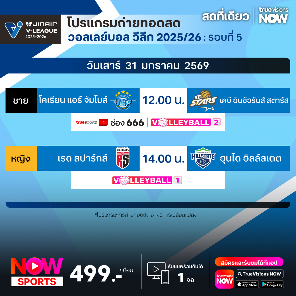 โคเรียน แอร์ จัมโบส์ พบ เคบี อินชัวรันส์ สตาร์ส เวลา 12.00 ทางช่อง TS 1 (666) / Volleyball 2