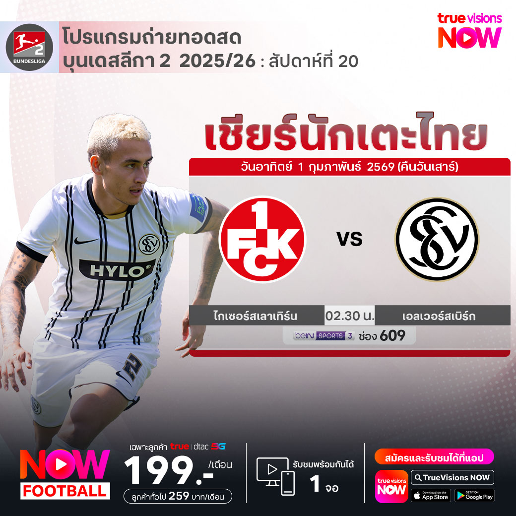 Kaiserslautern vs Elversberg เวลา 02.30-04.30 ทางช่อง beIN 3 (609)