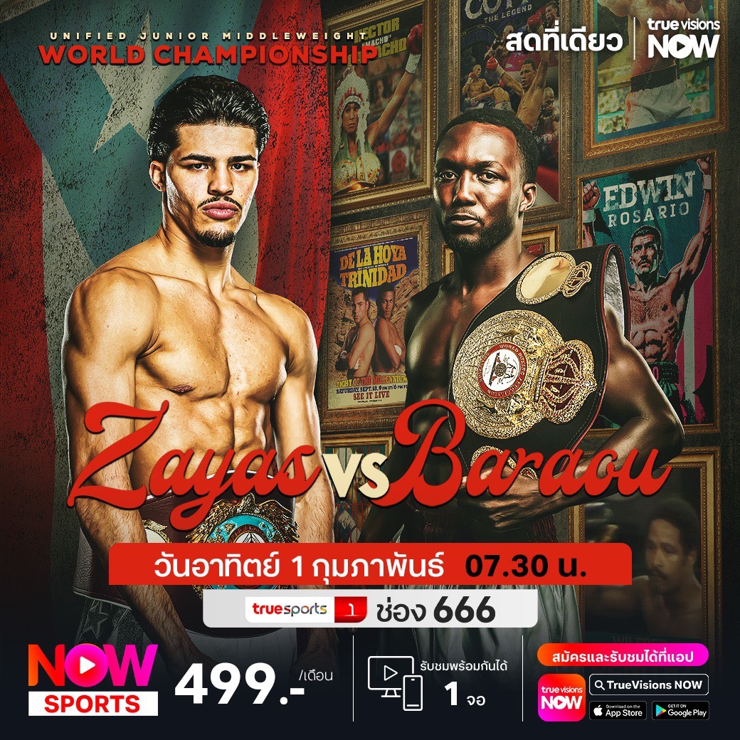 แฟนๆ กีฬาหมัดมวยต้องติดตามกันให้ได้ กับศึกใหญ่ไฟต์แรกประเดิมศักราช 2026 เป็นการเปิดศึกระหว่างสองแชมป์ต่างสถาบันที่ต่างก็ขึ้นเวทีมาด้วยศักดิ์ศรีที่ไม่เป็นรองกัน ซานเดอร์ ซายาส แชมป์จูเนียร์มิดเดิ้ลเวต องค์กรมวยโลก พบกับ แอบบาส บาราว แชมป์จากสมาคมมวยโลก ใครจะจบไฟต์นี้ด้วยการรวบแชมป์มาครองแต่เพียงผู้เดียว ชมสด เอ็กซ์คลูซีฟ จาก ซานฮวน เปอร์โตริโก้ ที่ ทรูวิชั่นส์