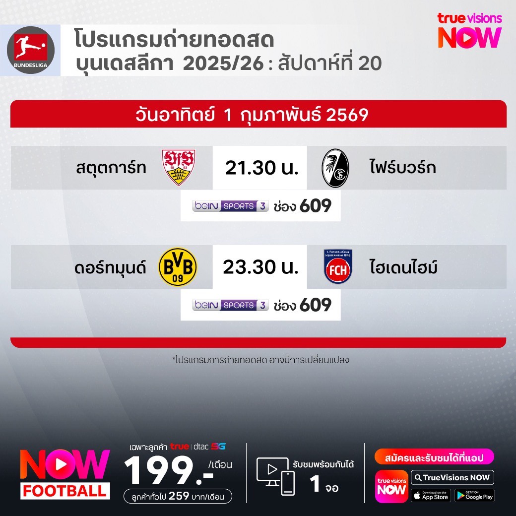 Dortmund vs Heidenheim เวลา 23.30-01.30 ทางช่อง beIN 3 (609)