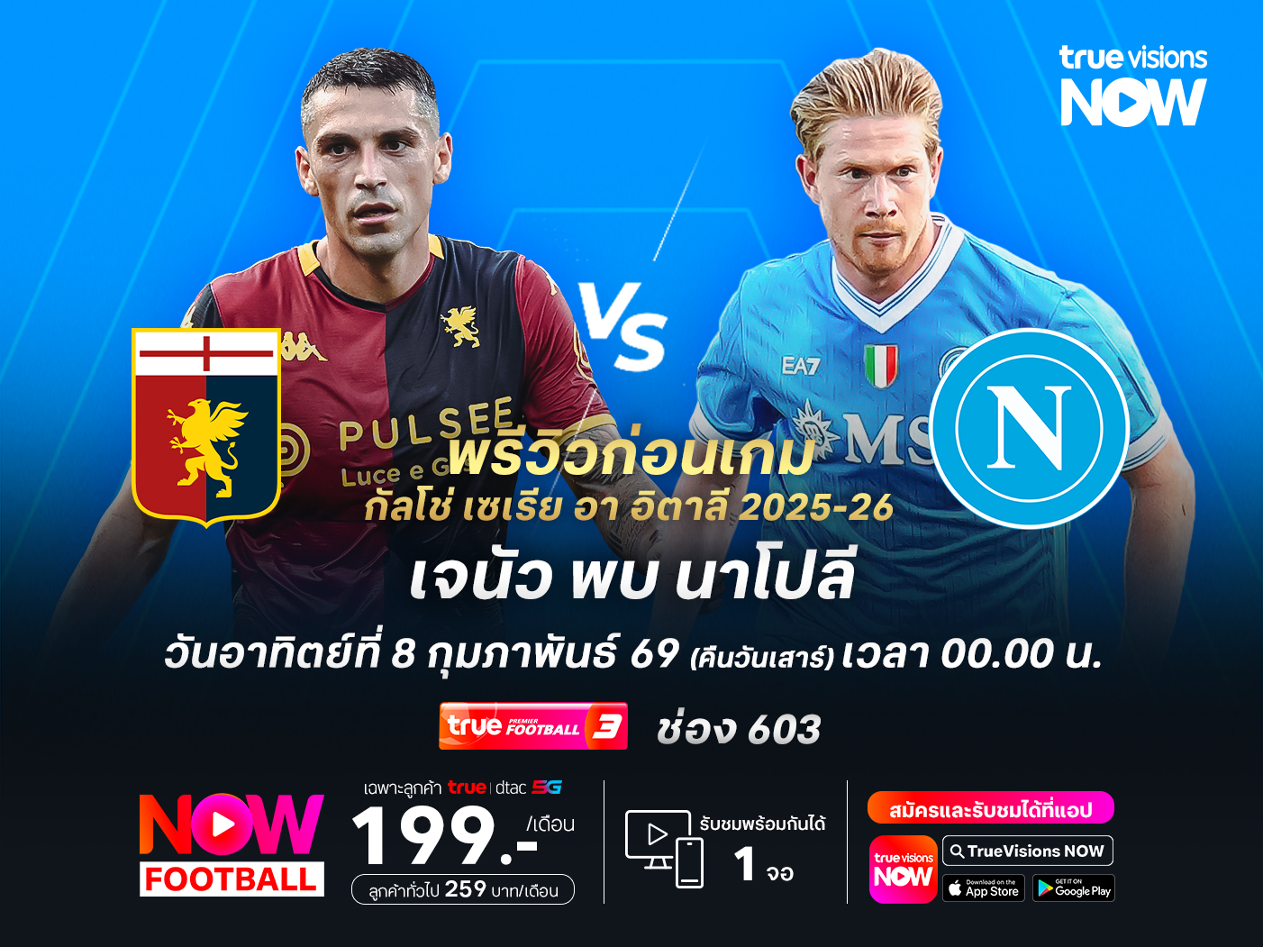 ศึก กัลโช่ เซเรีย อา อิตาลี 2025-26 เจนัว จะเล่นที่ สตาดิโอ ลุยจิ แฟร์ราริส รับการมาเยือนของ นาโปลี โดยเกมนี้ เจนัว เจ้าถิ่น มีฟอร์มที่ดีในช่วงที่ผ่านมา โดยพวกเขาแพ้แค่เกมเดียวจาก 6 นัดหลังสุดในลีก ขณะที่ นาโปลี ฟอร์มอาจจะมีแผ่วไปบ้าง แต่ในภาพรวมยังถือว่าทำได้ดี และเกมนี้พวกเขายังมีโอกาสมากกว่าที่จะบุกมาเก็บ 3 แต้ม