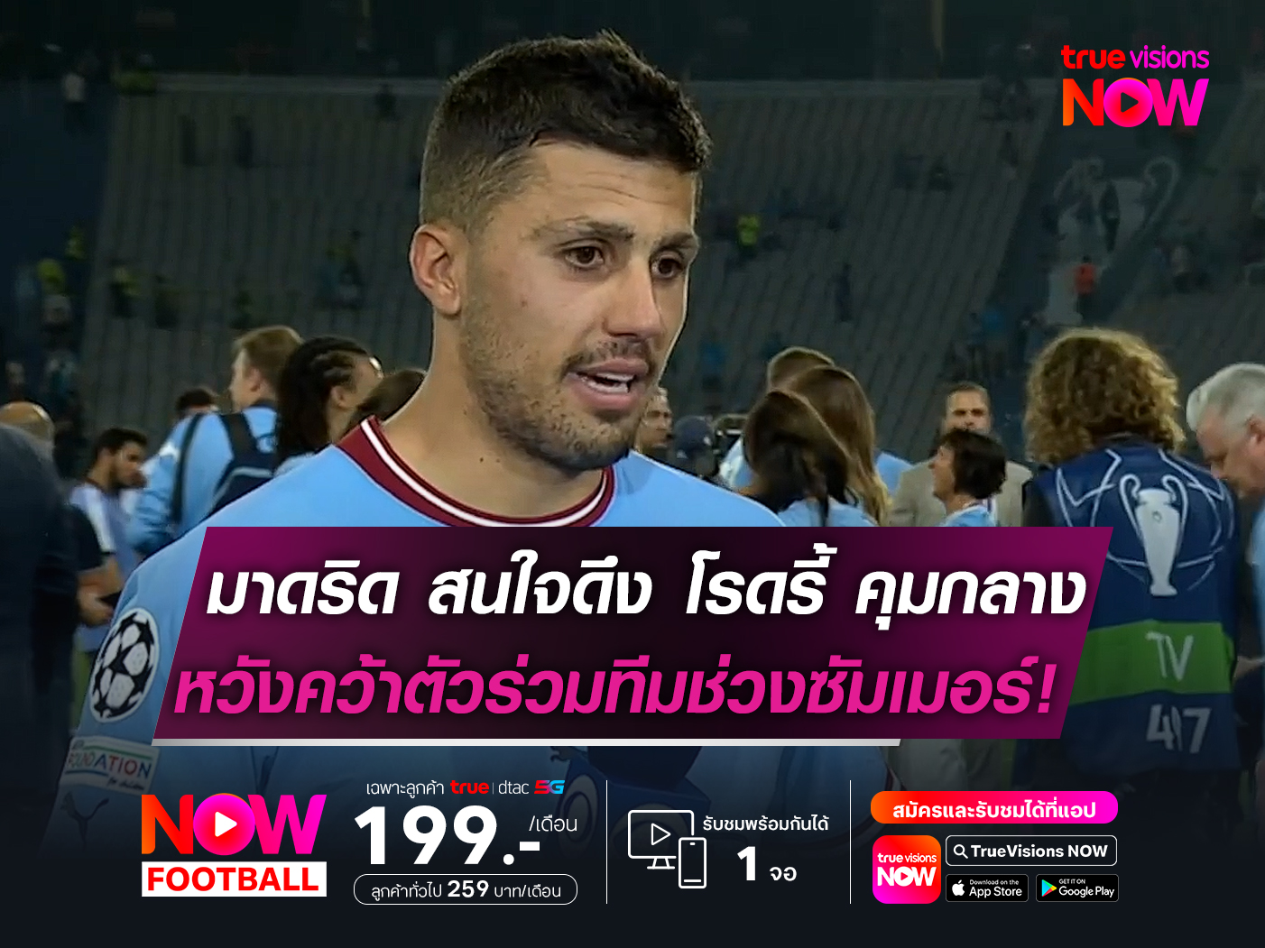 ทีมทอล์ค ระบุเพิ่มเติมว่า มาดริดมอง โรดรี้ เป็นแม่ทัพแดนกลางที่สามารถคุมจังหวะเกมและบัญชาการทีมได้ไม่ต่างจากตำนานในอดีต ขณะที่ความไม่แน่นอนในอนาคตของ เป๊ป กวาร์ดิโอล่า รวมถึงแนวโน้มการปรับทัพครั้งใหญ่ของแมนฯ ซิตี้ อาจเปิดช่องให้ราชันชุดขาวคว้าโอกาสนี้ และดึงมิดฟิลด์วัย 29 ปีขึ้นมาเป็นศูนย์กลางของยุคใหม่ในถิ่นเบร์นาเบว