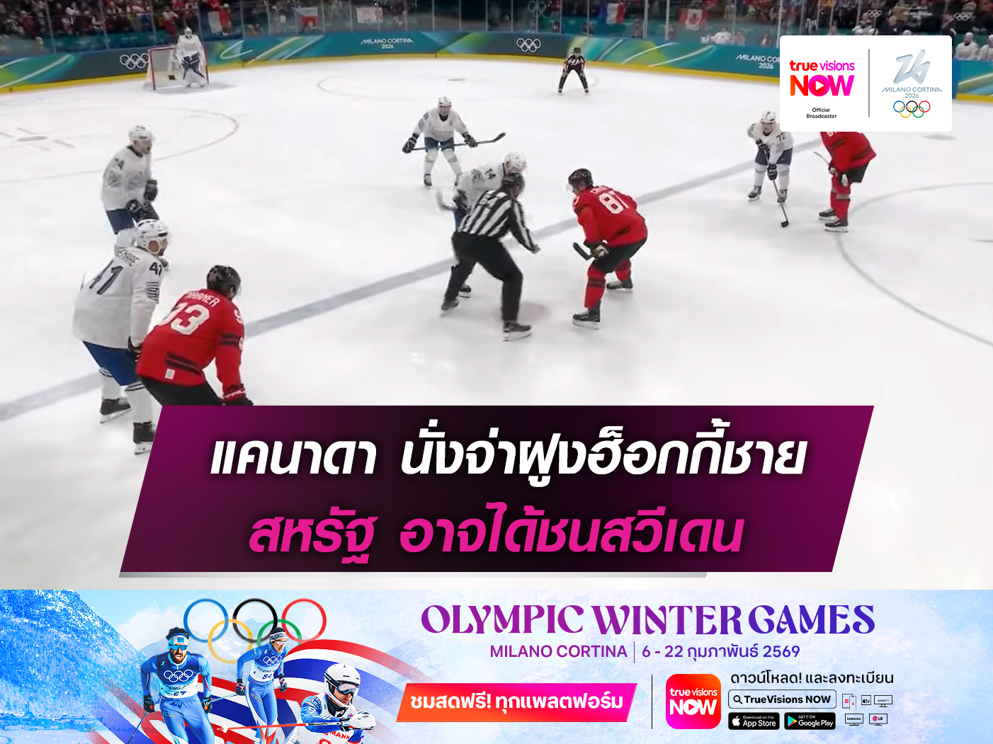 พิเศษ! สำหรับแฟนกีฬาทุกคนชมฟรี ทุกแพลตฟอร์มการแข่งขัน วินเทอร์ โอลิมปิก 2026 มหกรรมกีฬา ที่งดงามที่สุดของโลก ถ่ายทอดสดให้รับชมฟรีทุกเครือข่ายทางแอปพลิเคชัน TrueVisions Now และ โซเชียลมีเดียทุกช่องทาง