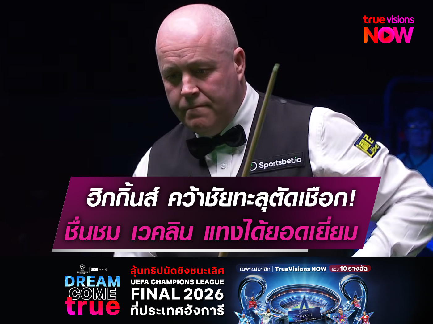 ศึกสอยคิว "เพลเยอร์ส แชมเปี้ยนชิพ 2026" รอบ 8 คนสุดท้าย จอห์น ฮิกกิ้นส์ มืออันดับ 5 ของโลก พบกับ คริส เวคลิน มืออันดับ 15 ของโลก ผลปรากฏว่า ฮิกกิ้นส์ เอาชนะไปแบบสนุก 6-3 เฟรม ผ่านเข้ารอบไปพบกับ "เต็ง 1" จัดด์ ทรัมป์ มืออันดับ 1 ของโลกชาวอังกฤษ