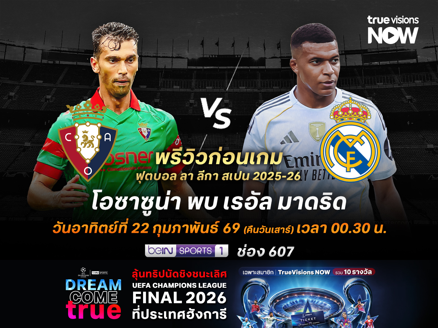 ถ่ายทอดสดทาง : beIN Sports 1 (ช่อง 607)
