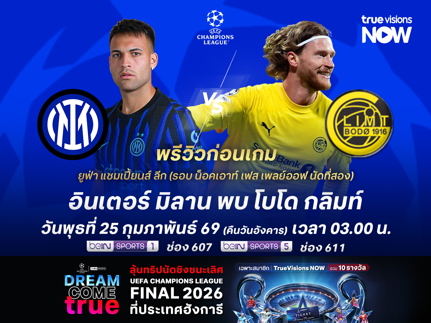 ศึก ยูฟ่า แชมเปี้ยนส์ ลีก 2025-26 รอบ น็อคเอาท์ เฟส เพลย์ออฟ นัดที่สอง อินเตอร์ มิลาน จากอิตาลี จะเล่นที่ จูเซ็ปเป้ เมอัซซ่า รับการมาเยือนของ โบโด กลิมท์ จากนอร์เวย์ โดยเกมนี้ อินเตอร์ มิลาน เจ้าถิ่น ฟอร์มในภาพรวมยังถือว่าแข็งแกร่งมาก เพราะชนะไปถึง 12 จาก 15 นัดหลังสุด ขณะที่ โบโด กลิมท์ ก็ฟอร์มดีเช่นกัน แต่การมาเยือน อินเตอร์ จะโดนปูพรมบุกแน่นอน อยู่ที่ว่าจะรักษาสกอร์ที่ได้เปรียบไว้ได้หรือไม่เท่านั้น