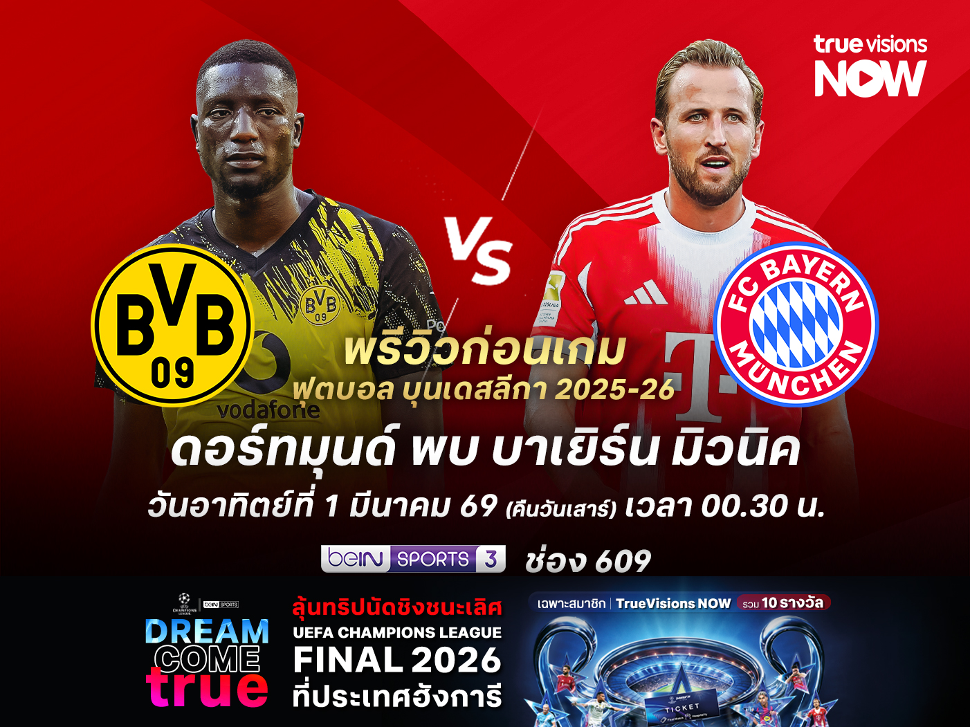 ถ่ายทอดสดทาง : beIN Sports 3 (ช่อง 609)