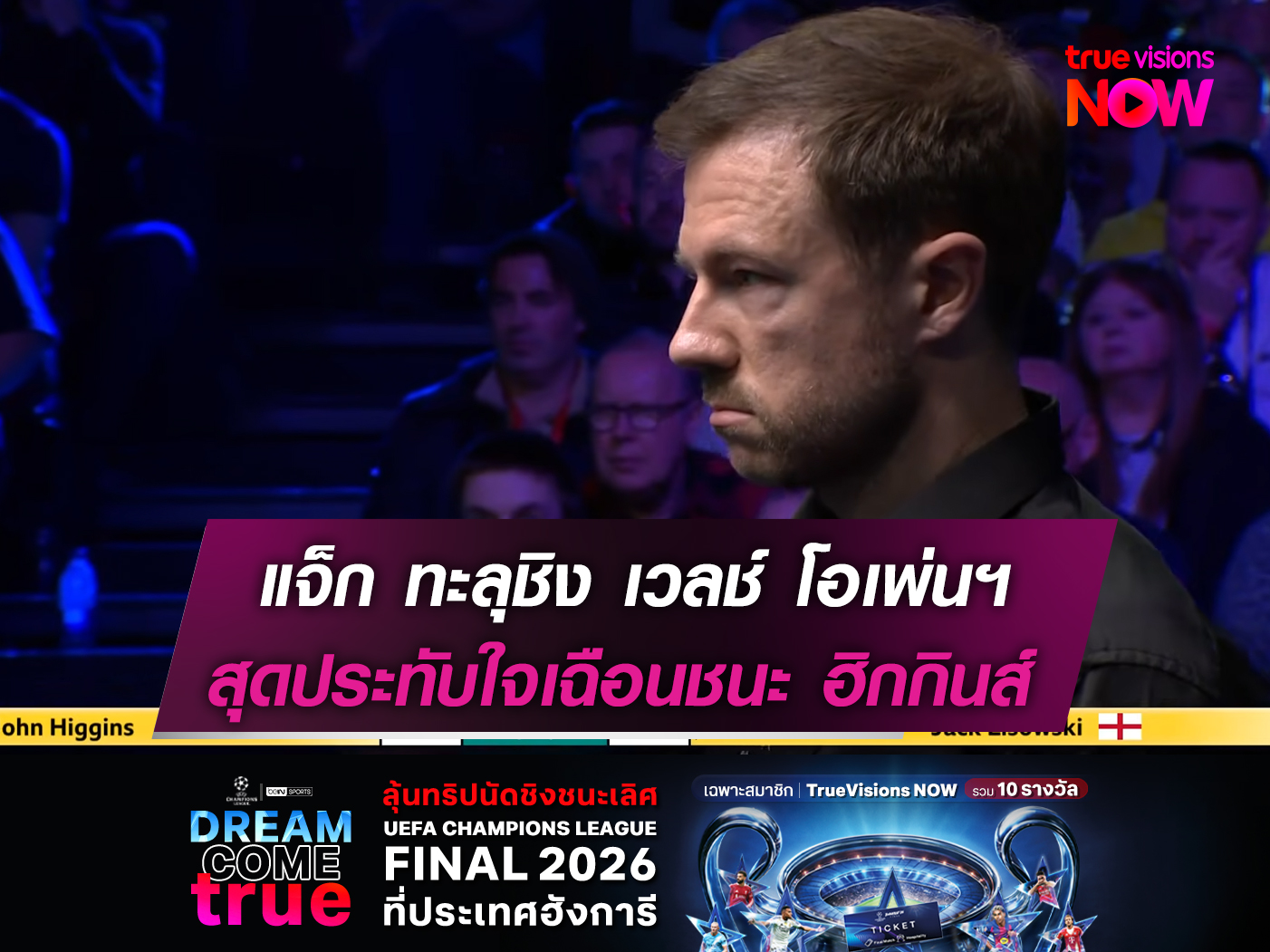 แจ็ก ลิซอฟสกี้ ยกชัยชนะเหนือ "พ่อมดวิสกี้" จอห์น ฮิกกิ้นส์ เป็นแมตช์แห่งความทรงจำ! ในการแข่งขันสนุกเกอร์รายการสะสมคะแนน "เวลช์ โอเพ่น 2026" ชิงเงินรางวัลรวม 550,000 ปอนด์ หรือประมาณ 21 ล้านบาท ที่สังเวียน เวนิว ซิมรู เมืองอานดิดโน่ ประเทศเวลส์
