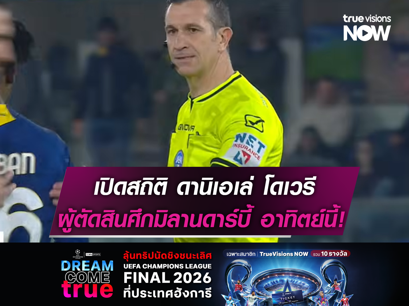 เปิดสถิติตของ ดานิเอเล่ โดเวรี ผู้ตัดสินที่จะทำหน้าที่ชี้ขาดเกมดาร์บี้แมตช์แห่งเมืองมิลาน ระหว่าง เอซี มิลาน เปิดบ้านรับการมาเยือน อินเตอร์ มิลาน คืนวันอาทิตย์นี้(8 มี.ค. 69) เวลา 02.45 น. ถ่ายทอดสดทางแอปพลิเคชัน ทรูวิชั่นส์ นาว