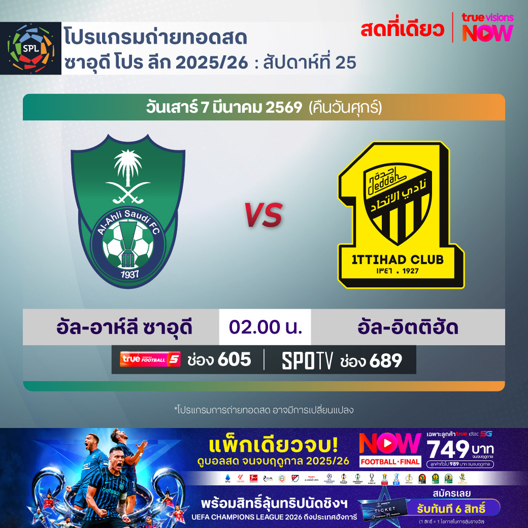 Al Ahli vs Al Ittihad เวลา 02.00-04.00 ทางช่องTPF 5(605) / SPOTV (689)