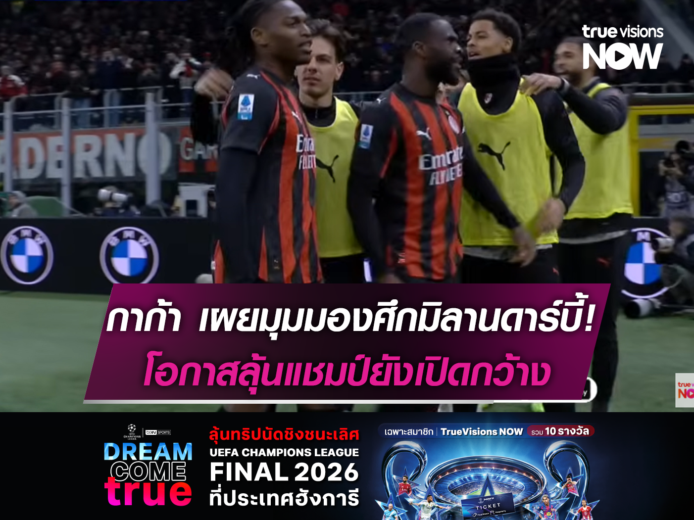 ศึกฟุตบอลกัลโช่ เซเรีย อา อิตาลี ค่ำคืนวันอาทิตย์นี้(8 มี.ค. 69) มีเกมนัดสำคัญในศึกดาร์บี้แมตช์ ระหว่าง เอซี มิลาน รองจ่าฝูงของลีก เปิดสนามซาน ซีโร่ พบกับ อินเตอร์ มิลาน จ่าฝูงที่มีแต้มนำห่าง 10 คะแนน ถ่ายทอดสดทางแอปพลิเคชัน ทรูวิชั่นส์ นาว