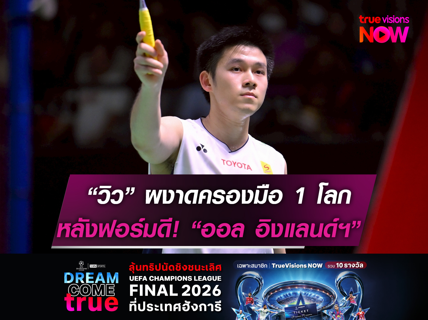 วิว” กุลวุฒิ วิทิตศานต์ นักแบดมินตันชายเดี่ยวทีมชาติไทย ทวงบัลลังก์มือ 1 โลกได้สำเร็จอีกครั้ง จากการจัดอันดับโลกของสหพันธ์แบดมินตันโลก หลังทำผลงานยอดเยี่ยมในศึกออล อิงแลนด์ โอเพ่น 2026