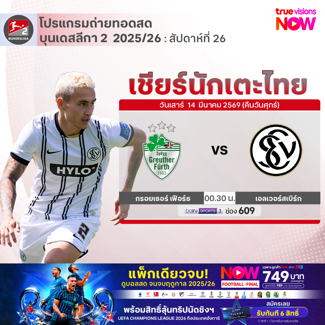 Greuther Furth vs Elversberg เวลา 00.30-02.30 ทางช่อง beIN 3 (609)