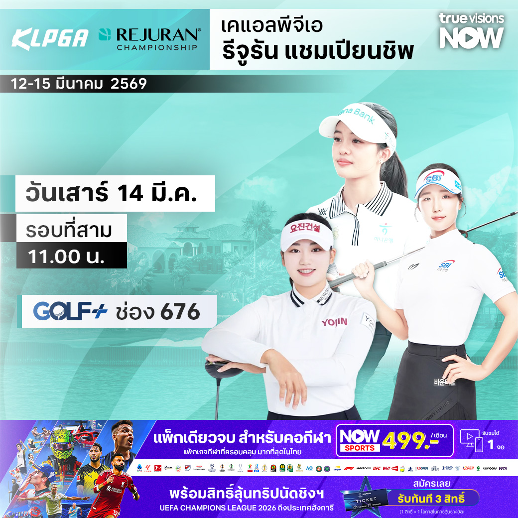 สนุกและน่าติดตามแน่นอน เมื่อทัพใหญ่ของโปรกอล์ฟสาวชั้นนำจากเกาหลีใต้ ยกทีมมาดวลฝีมือและทวงแชมป์กันที่ประเทศไทย ในศึกเคแอลพีจีเอ 2026 กับทัวร์นาเมนต์สำคัญ รีจูรัน แชมเปี้ยนชิพ ที่สนามระดับโลก ที่จัดศึกใหญ่รายการสำคัญมากมายอย่าง อมตะ สปริง คันทรี คลับ จังหวัดชลบุรี ส่งใจเชียร์โปรสาวไทยในฐานะนักกอล์ฟเจ้าถิ่น ทำสกอร์แข่งกับโปรสาวแดนโสม ใครจะหยิบแชมป์รายการนี้ไปครอง ชมสด ครบทุกรอบ ที่ ทรูวิชั่นส์