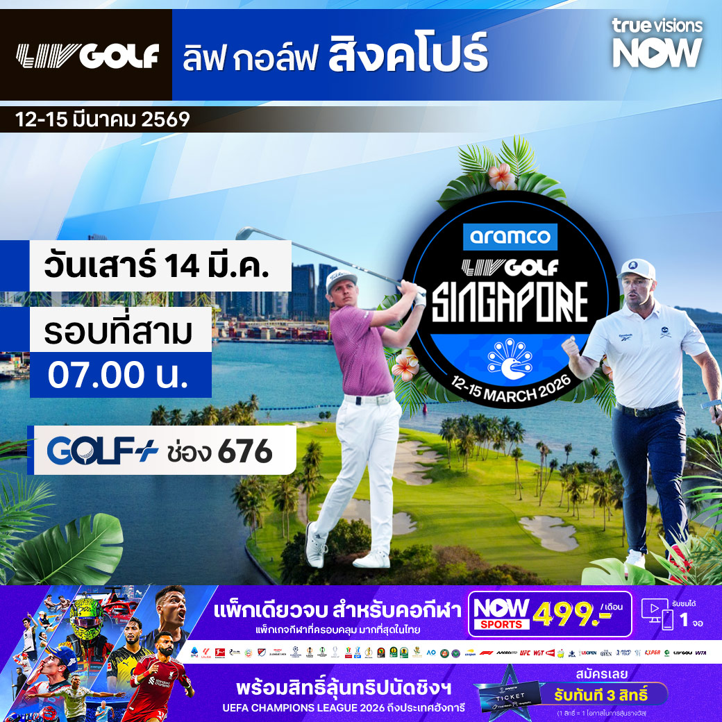 ลิฟ กอล์ฟ 2026 สัปดาห์นี้พบกับ ลิฟ กอล์ฟ สิงคโปร์ เดือดแน่นอน ที่สนาม เซนโตซ่า กอล์ฟ คลับ ประเทศสิงคโปร์ เหล่าซูเปอร์สตาร์ตัวท็อป พร้อมโชว์ทีเด็ดในการทำสกอร์เหนือคู่แข่ง เพื่อเป้าหมายนำชัยชนะมาสู่ทีมและคะแนนส่วนบุคคลที่มีเงินรางวัลมหาศาล ร่วมลุ้นกันว่าใครจะทะลุไปถึงตำแหน่งแชมป์ ทั้งประเภททีมและบุคคล ชมสด ครบทุกรอบ ที่ ทรูวิชั่นส์