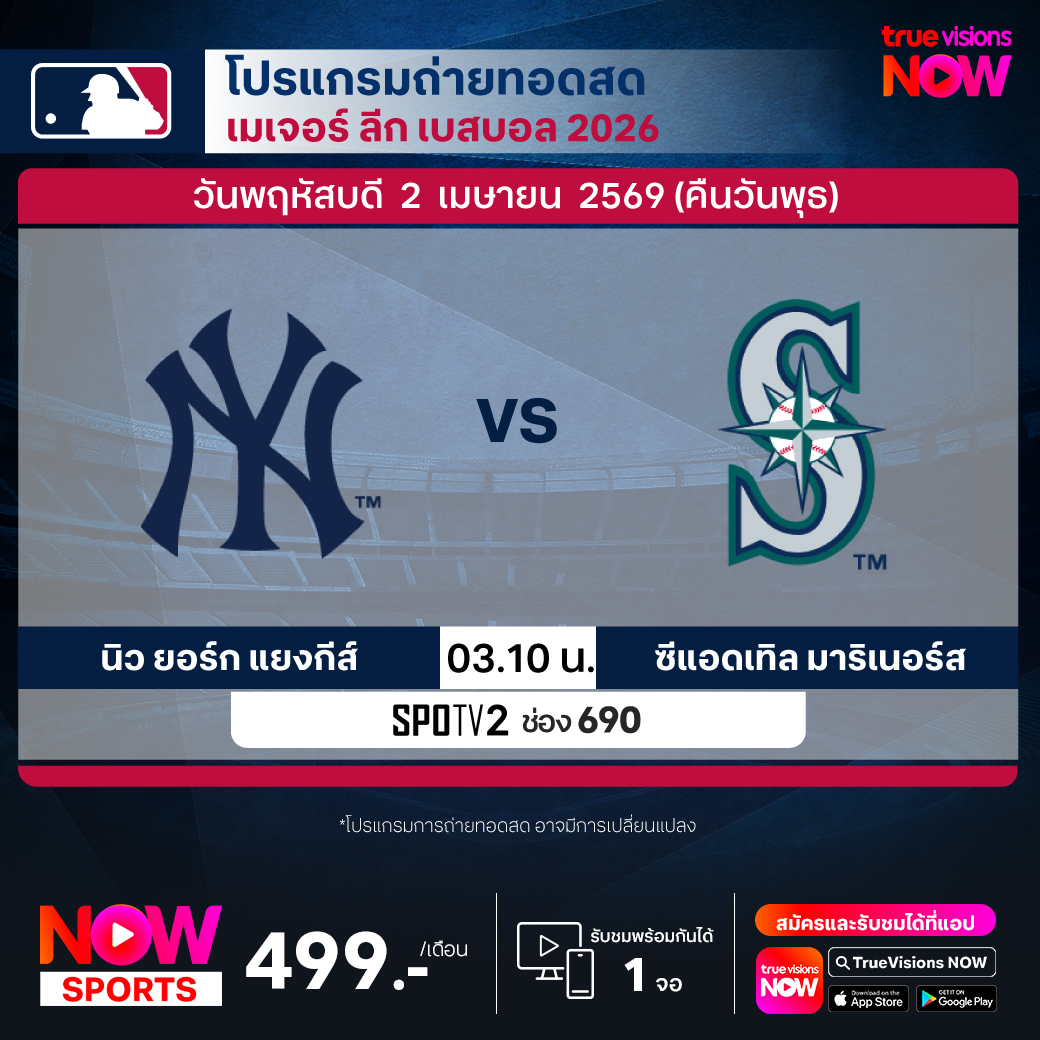 นิวยอร์ก แยงกีส์ พบ ซีแอดเทิล มาริเนอร์ส เวลา 03.10 ทางช่อง SPOTV2 (690)