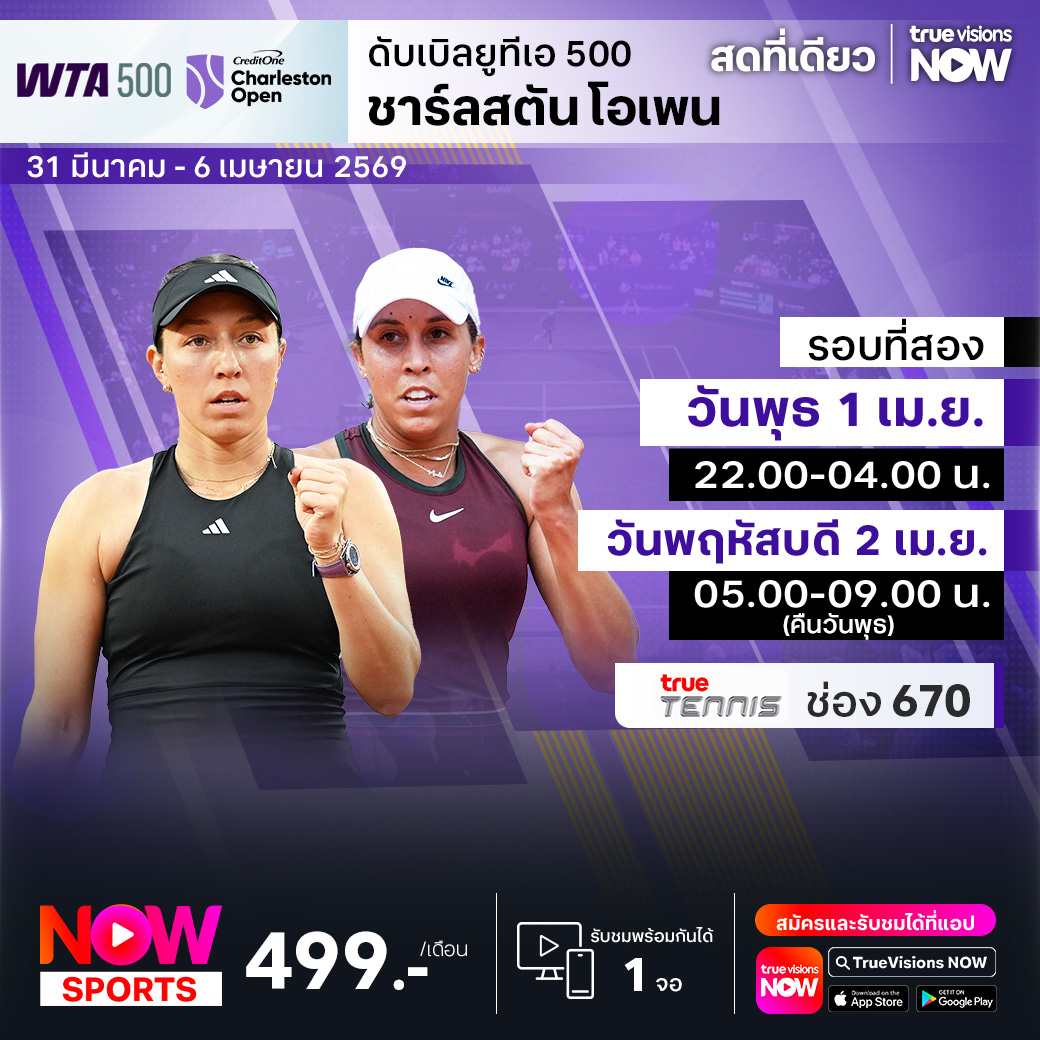 เทนนิสหญิง ดับเบิ้ลยูทีเอ ทัวร์ เริ่มเข้าสู่ช่วงการแข่งขันบนคอร์ทดินเป็นที่เรียบร้อย โดยสัปดาห์นี้พบกับรายการา ชาร์ลสตัน โอเพ่น ที่เมืองชาร์ลสตัน รัฐเซาท์แคโรไลนา ประเทศสหรัฐอเมริกา ความพิเศษของรายการนี้คือเป็นการแข่งขันบนคอร์ทดินสีเขียว บรรดานักเทนนิสหญิงระดับโลกเข้าร่วมแข่งขันกันคับคั่ง ร่วมลุ้นกันว่าใครจะคว้าแชมป์ไปครอง ชมสด ครบทุกรอบ ที่ ทรูวิชั่นส์