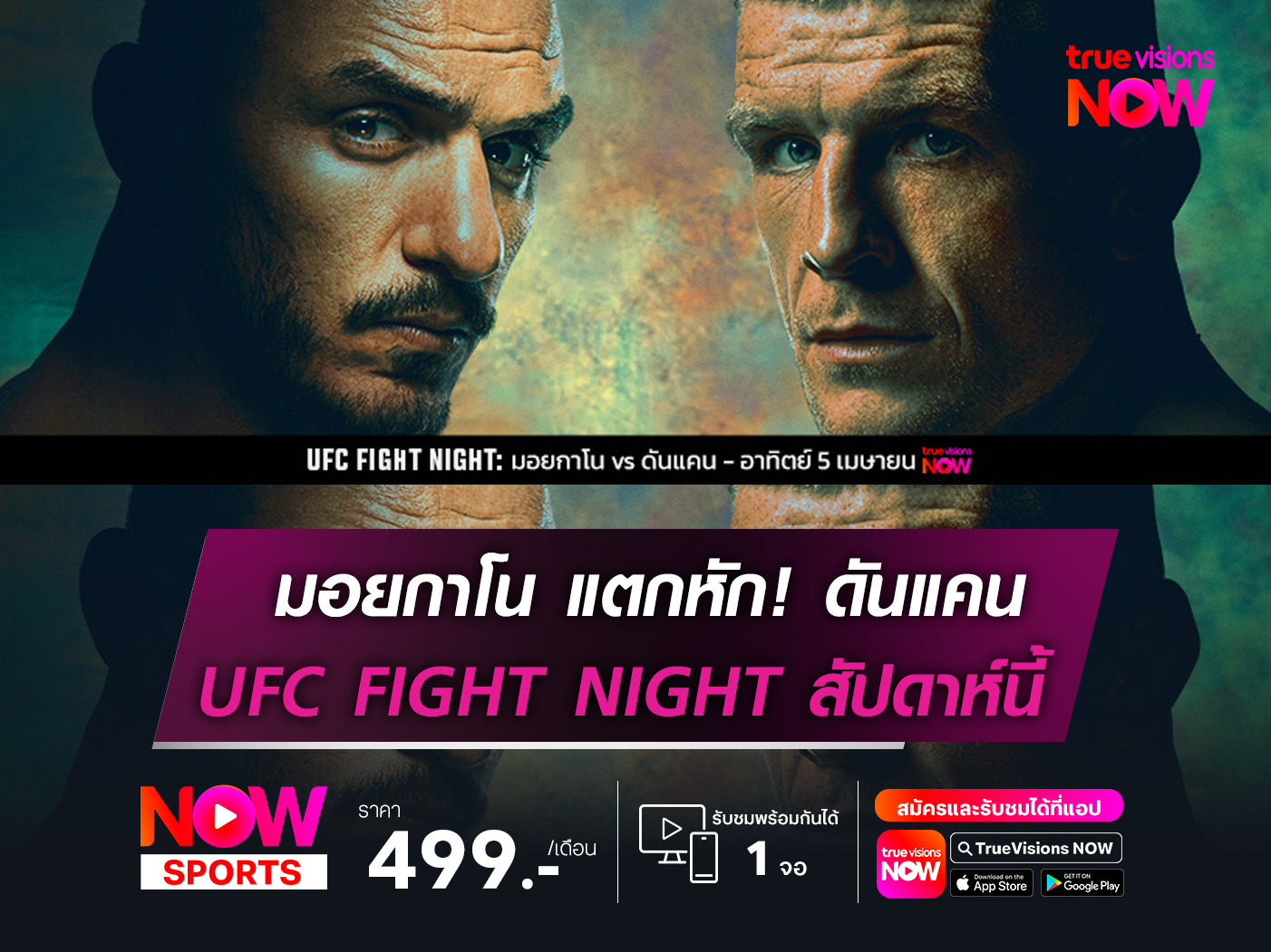 สำหรับการต่อสู้ภายใต้รายการ UFC FIGHT NIGHT : MOICANO VS DUNCAN จะระเบิดศึก ณ สังเวียน Meta Apex, ลาส เวกัส สหรัฐอเมริกา วันอาทิตย์ที่ 5 เมษายน นี้ คู่หลักของรายการเริ่มเวลา 07.00 น. ตามเวลาประเทศไทย แฟนหมัดมวยชาวไทยติดตามชมได้ทางช่อง TRUE SPORTS HD3 (668)