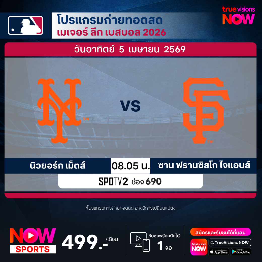 นิวยอร์ก เม็ตส์ พบ ซาน ฟรานซิสโก ไจแอนส์ เวลา 08.05 ทางช่อง SPOTV2 (690)