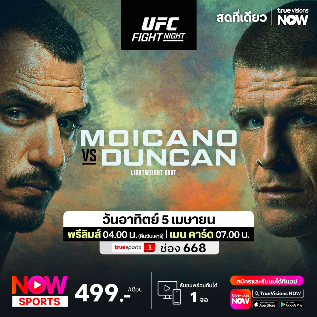 ยูเอฟซี ไฟต์ ไนท์ สัปดาห์นี้กลับไปซัดกันที่ เมต้า เอเพ็กซ์ ในลาสเวกัส เนวาด้า สหรัฐอเมริกา คู่เอก รุ่นไลต์เวต เฮนาโต้ มอยคาโน่ อดีตผู้ท้าชิงรุ่นนี้จากบราซิล ปะทะ คริส ดันแคน นักสู้ขาบู๊จากสกอตแลนด์ ร่วมด้วยศึกสายเลือดบราซิเลียน รุ่นสตรอว์เวตหญิง เวอร์น่า แจนดิโรบ้า พบ ทาบาธ่า ริกชี่ ชมสด จุใจ เอ็กซ์คลูซีฟ ที่เดียวที่ ทรูวิชั่นส์
