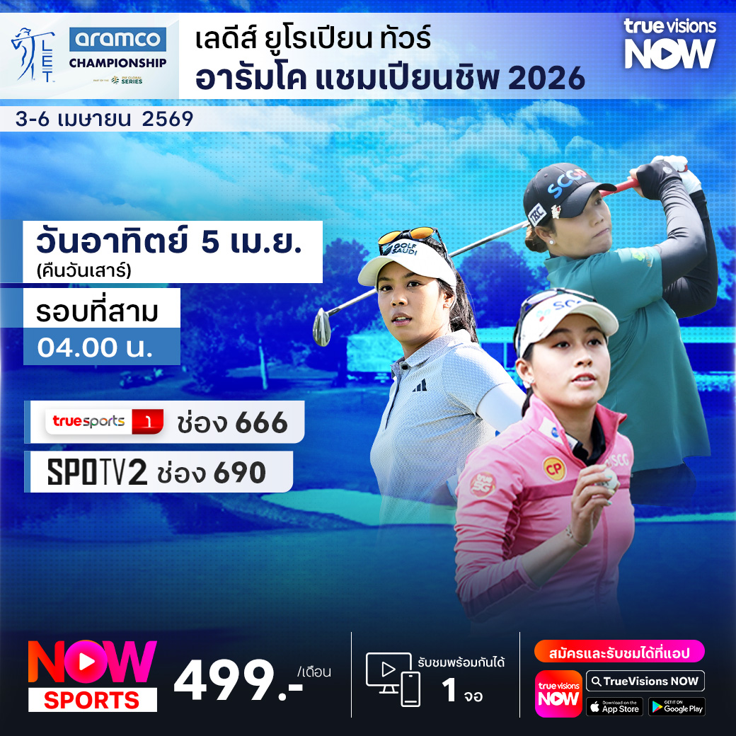 กอล์ฟ เลดี้ส์ ยูโรเปี้ยน ทัวร์ สัปดาห์นี้พบกับรายการ อารัมโก้ แชมเปี้ยนชิพ รายการที่ร่วมกันจัดระหว่าง 2 ทัวร์ใหญ่ เลดี้ส์ ยูโรเปี้ยน ทัวร์ และ แอลพีจีเอ ทัวร์ ที่มีเงินรางวัลมหาศาลให้ชิงกันมากถึง 4 ล้านเหรียญสหรัฐฯ หรือประมาณ 130.5 ล้านบาท ร่วมเชียร์โปรสาวไทยที่นำโดยหมายเลข 1 ของโลกอย่าง จีโน่ ธิติกุล จากสนาม ชาโดว์ ครีก ลาสเวกัส ชมสด ครบทุกรอบ ที่ ทรูวิชั่นส์