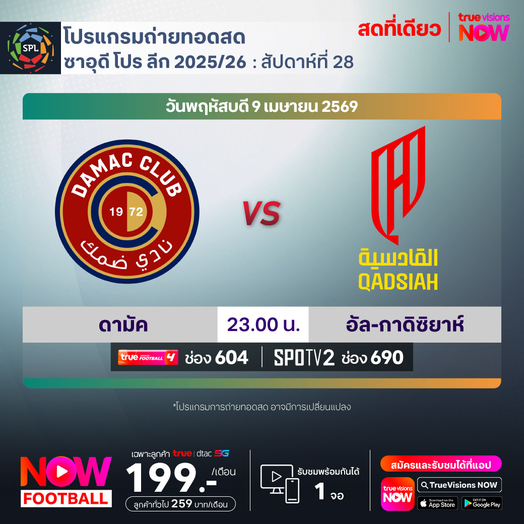 ดามัค พบ อัล-กาดิซิยาห์ เวลา 23.00-01.00 ทางช่องTPF 4(604) / SPOTV2 (690)