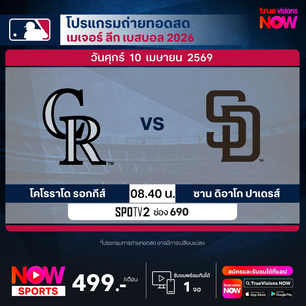 โคโรราโด รอกกีส์ พบ ซาน ดิอาโก ปาเดรส์ เวลา 08.40 ทางช่อง SPOTV2 (690)