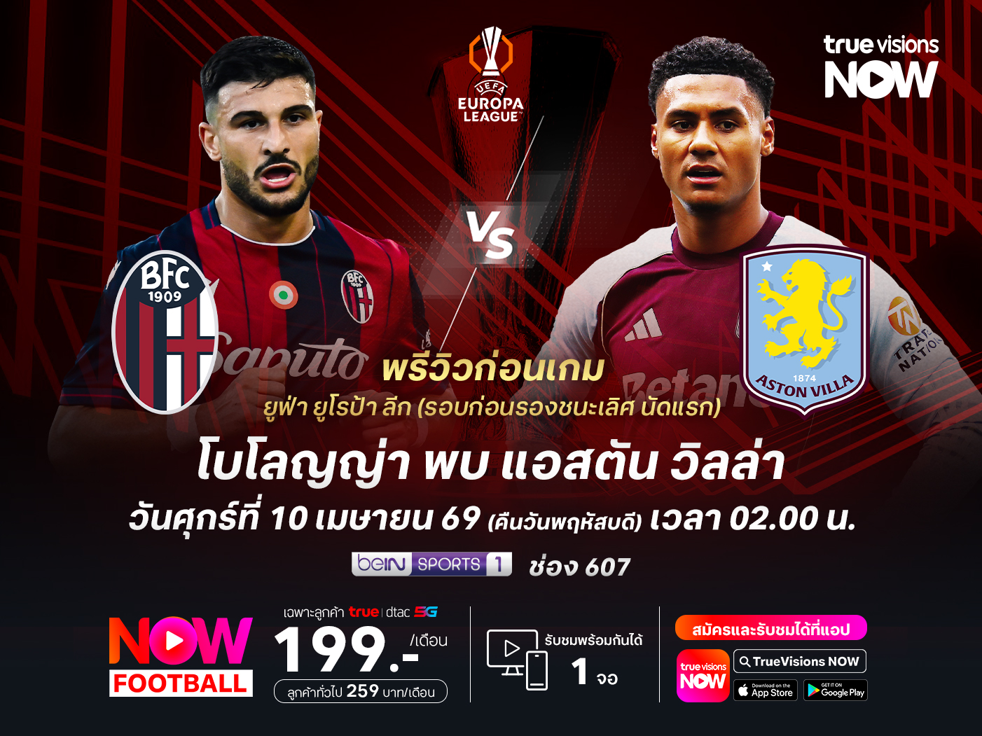 ถ่ายทอดสดทาง : beIN Sports 1 (ช่อง 607)