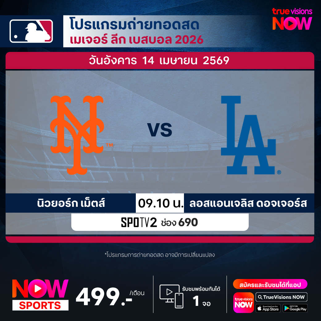 นิวยอร์ก เม็ตส์ พบ ลอสแอนเจลิส ดอจเจอร์ส เวลา 09.10 ทางช่อง SPOTV2 (690)