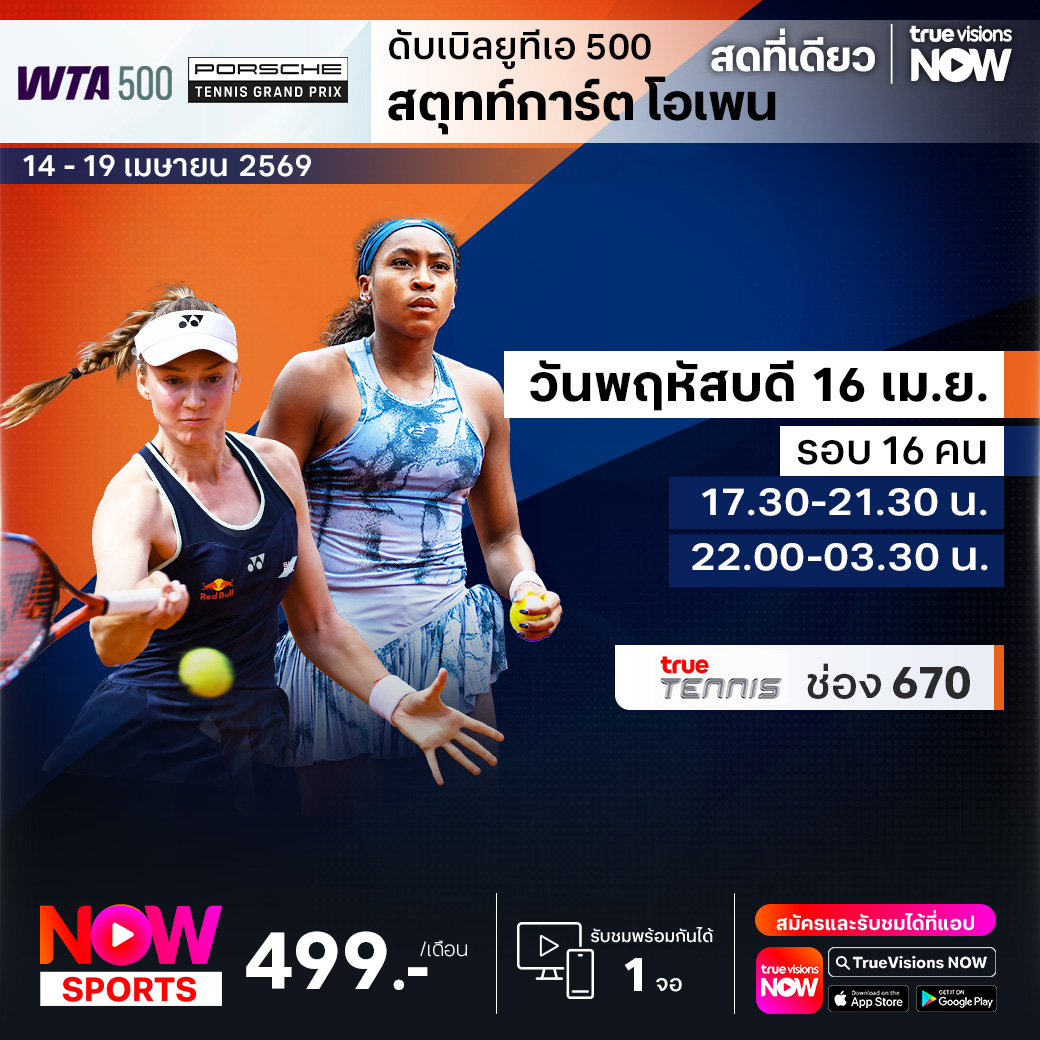 รอบ 16 คน เวลา 17.30-21.30 / 22.00-03.30 ทางช่อง True Tennis (670)