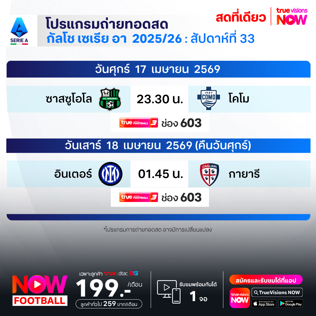 ซาสซูโอโล่ พบ โคโม่ เวลา 23.30-01.30 ทางช่องTPF 3(603)