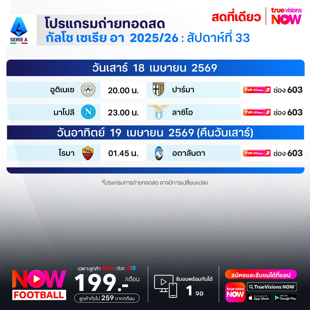 โรม่า พบ อตาลันต้า เวลา 01.45-03.45 ทางช่องTPF 3(603)
